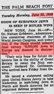 em 1919, depois da I Grande Guerra, aparece uma reclamação sobre um suposto Holocausto de "seis milhões" de judeus, no "isento" jornal "The American Hebrew". mas o choradinho não pegou, na altura.