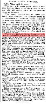Rabbi Wise: "Há 6 milhões a viver, a sangrar, e a sofrer argumentos a favor do sionismo."
