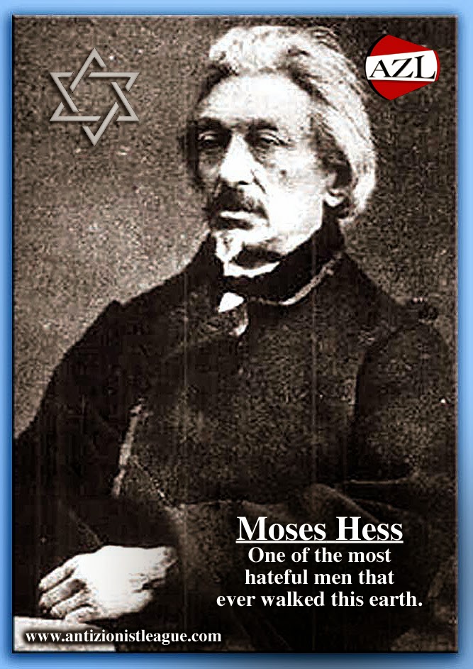 Moses Hess, o verdadeiro pai do marxismo ou 'comunismo moderno', era um judeu rabino e também foi um precursor do sionismo. foi o mentor de Mordechai aka 'Karl Marx', um outro judeu, neto de rabinos e familiar próximo da linhagem Rothschild, pela qual foi financiado, evidentemente.