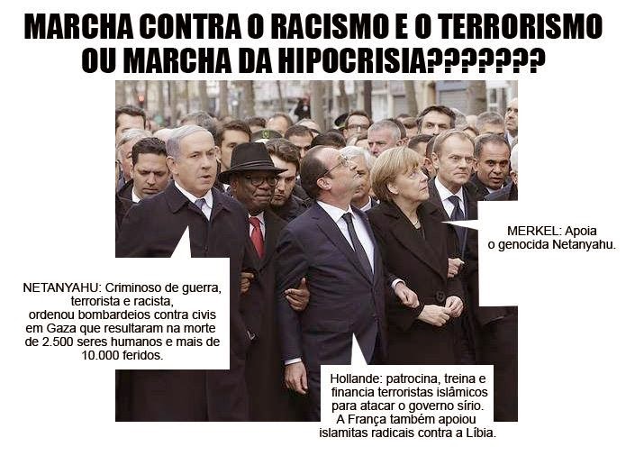 e que agora, depois do dito 'atentado' venha apelar a uma luta do Ocidente contra o 'terrorismo islâmico' da (CI)Al-Qaeda ou do Isis (Cia+Mossad)